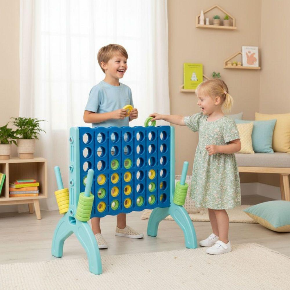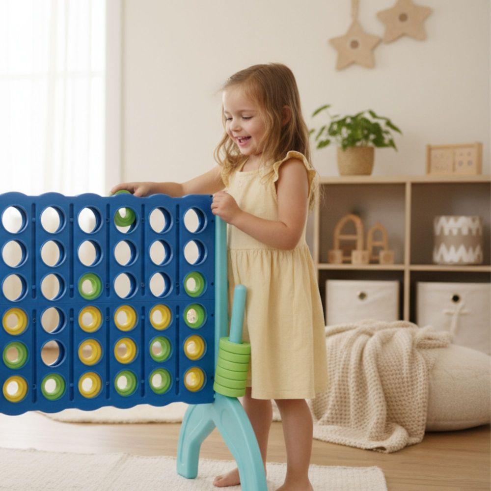 Sus dimensiones extragrandes lo convierten en el juego perfecto para disfrutar en grupo, ya sea en el aula o en el patio, ofreciendo una experiencia de juego inmersiva. Podrás diseñar tu estrategia de manera individual o colaborativa para alinear cuatro fichas del mismo color y ganar la partida. Un juego de lógica entretenido y desafiante que supera todas las expectativas.