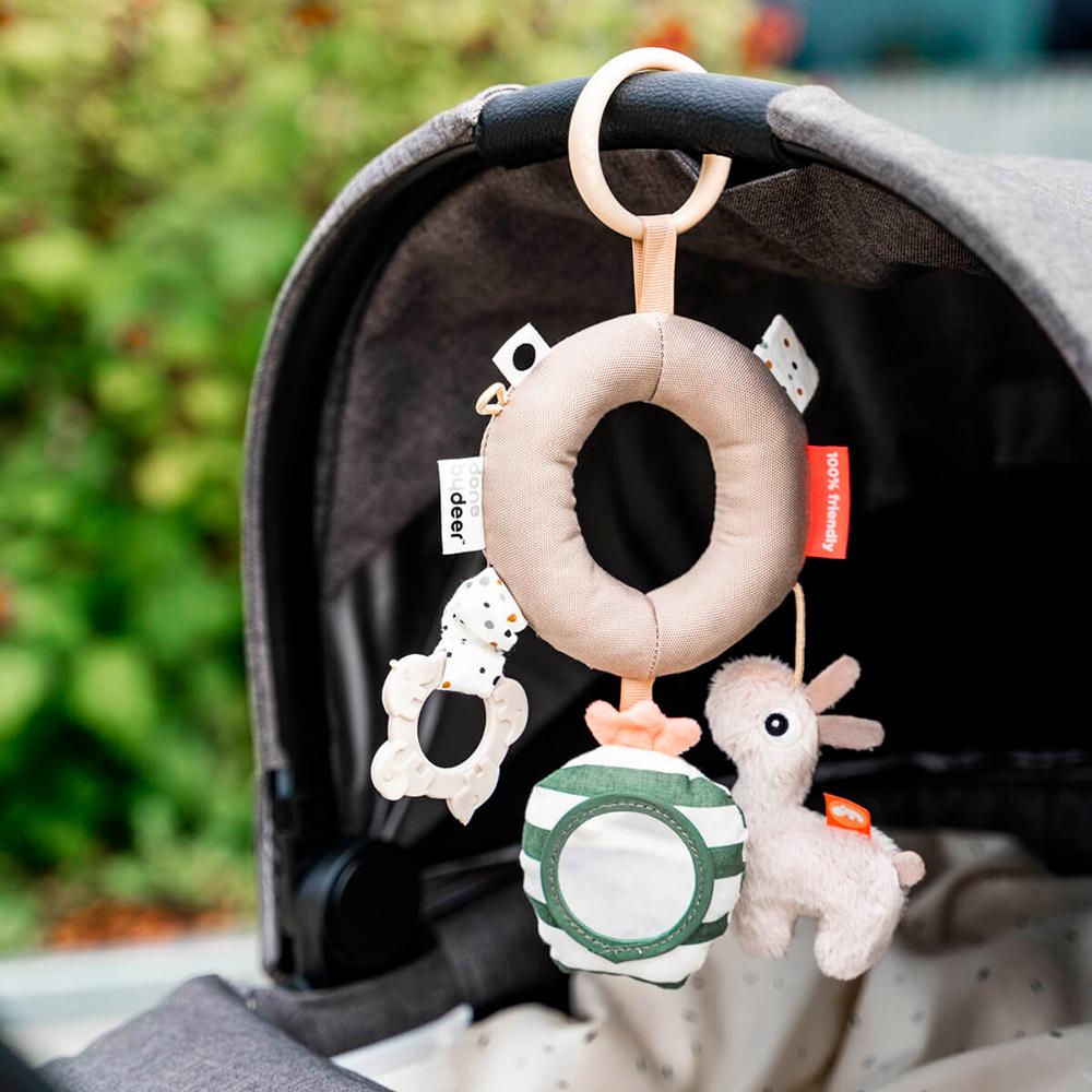 Incorpora múltiples estímulos como un suave mordedor para aliviar las encías, un espejo con sonajero, texturas, sonidos y elementos para manipular. Es fácil de agarrar y perfecto para llevar a cualquier parte, y además se puede sujetar cómodamente al cochecito, la cuna o la silla de paseo, acompañando a tu bebé en cada momento de juego y aprendizaje.