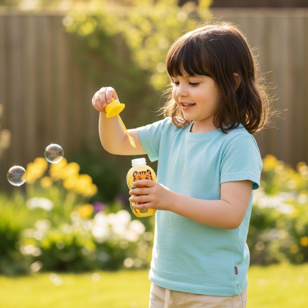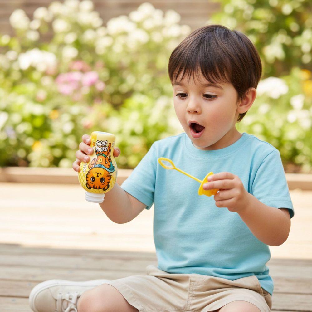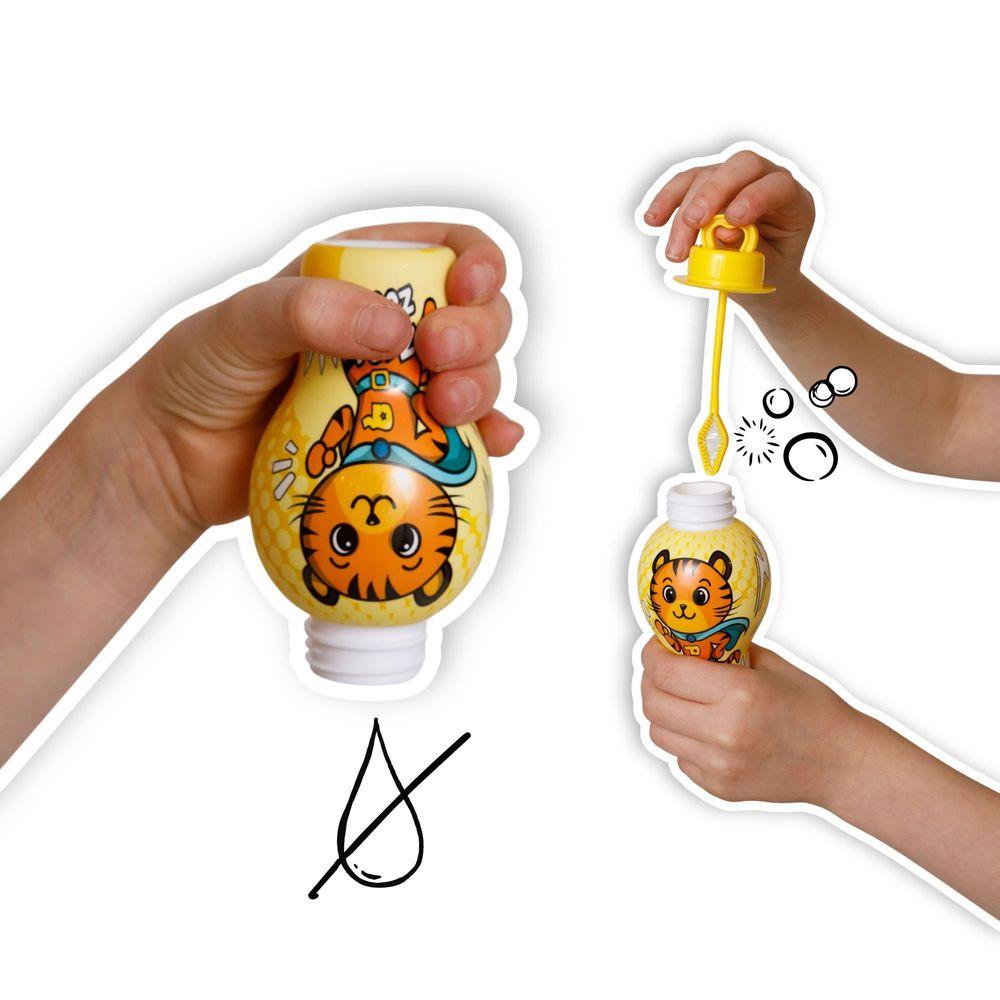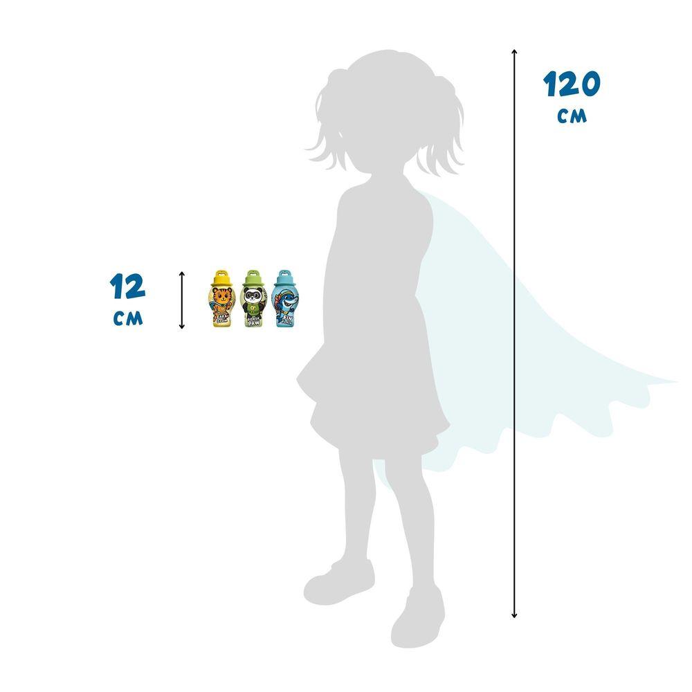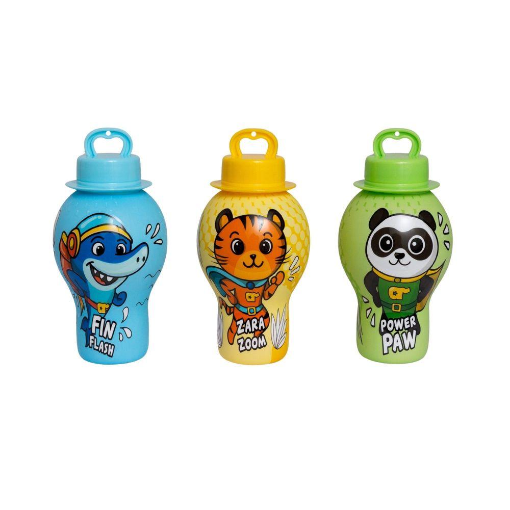 Un formato práctico y manejable para manos pequeñas, ideal para jugar de forma segura en cualquier entorno. Su sistema antifugas permite darle la vuelta totalmente sin derrames, lo que garantiza que niños y niñas disfruten de la magia de hacer pompas sin preocupaciones.Incluye varios diseños de animales superhéroes que despertarán en los más pequeños su imaginación y creatividad.Se venden por unidad en modelos surtidos.