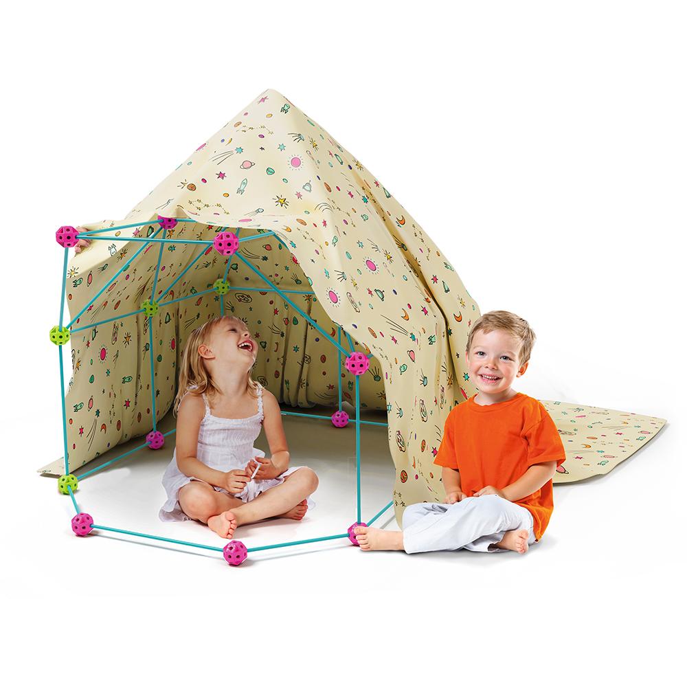 Diseña y construye con tus propias manos todo tipo de cabañas, estructuras o túneles. Este set de construcción para crear grandes edificaciones es perfecto para pequeños constructores: diseña, monta y agrega una simple sábana para convertir el resultado en un refugio, ¡alucinante!