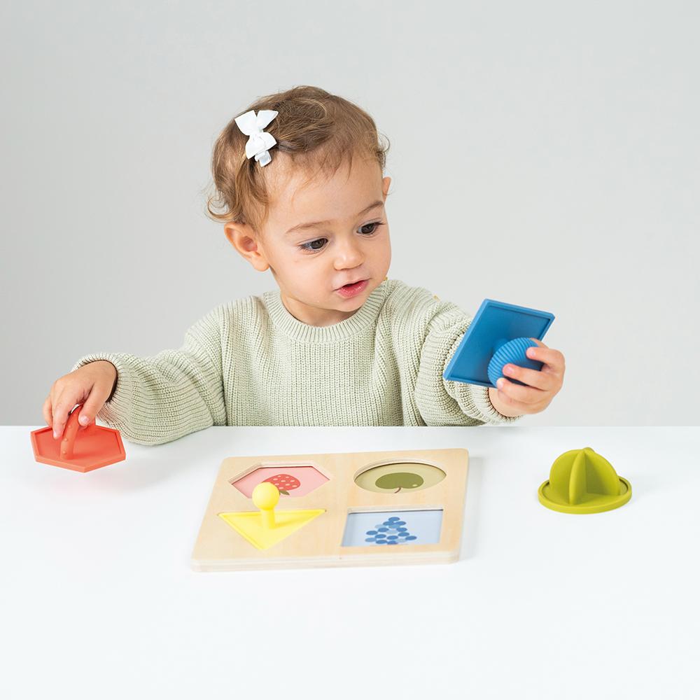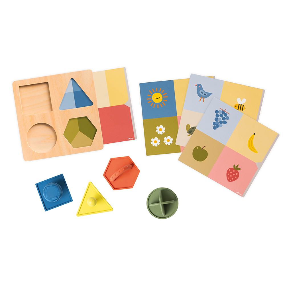 Este genial encaje tiene un diseño que garantiza infinidad de horas de diversión con la variedad de actividades que propone. Las cuatro formas del encaje también se pueden usar como sellos. El tablero dispone de una abertura en la que insertar una de las láminas incluidas y que permitirán usar el encaje para descubrir animales, colores, frutas o aprender los números, ¡diversión que no para!