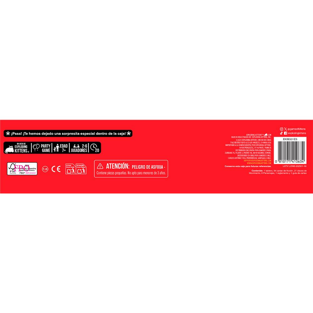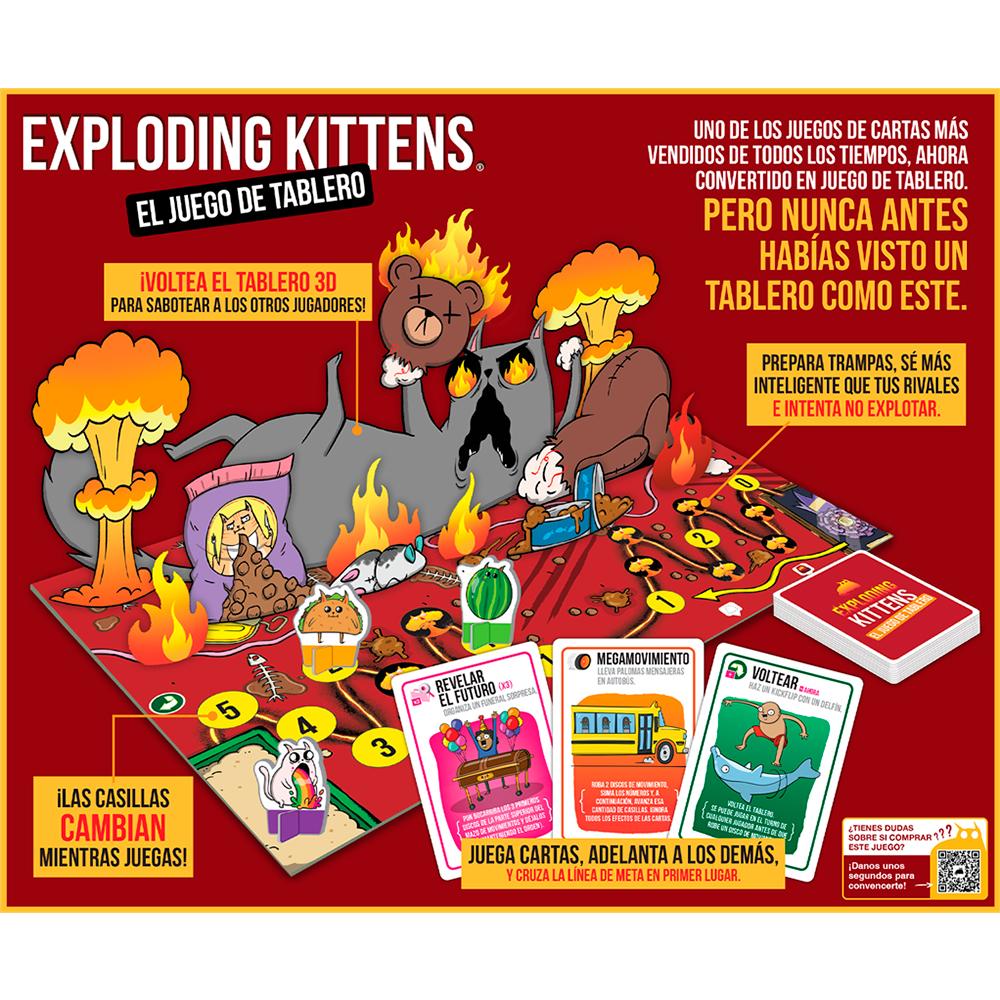 El objetivo es el mismo que en el juego de cartas: llegar a la meta antes que tus oponentes mientras usas un montón de cartas para fastidiar sus planes, ¡o volteas el tablero 3D y lo pones todo patas arriba!. Deberás tener habilidad para evitar las casillas de explosión que pueden hacer que te retrases aunque, ya sabes, las explosiones son algo que puede ocurrir en este juego. Llena tu mesa de diversión y gatitos y haz que tu próxima reunión con amigos o familia sea inolvidable.