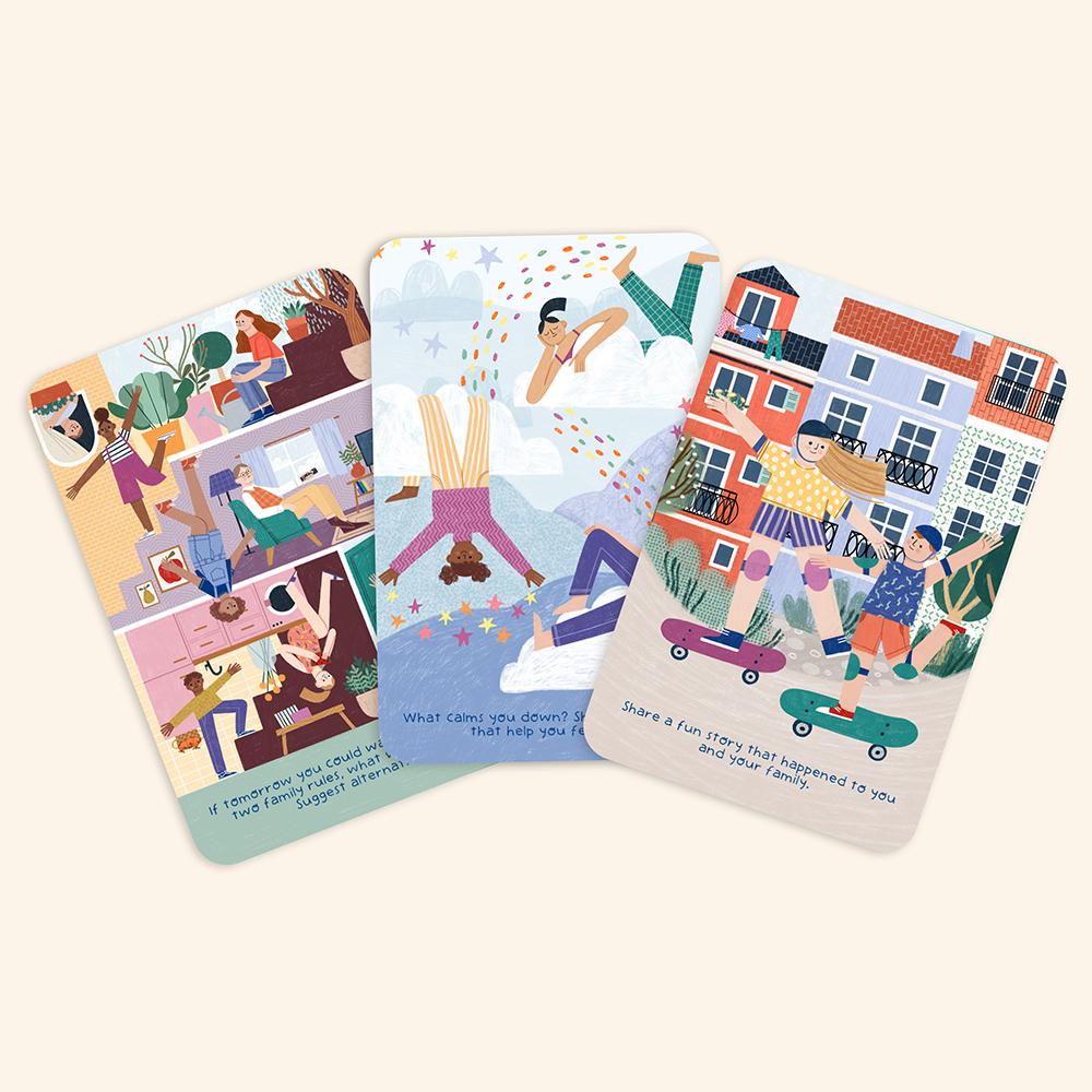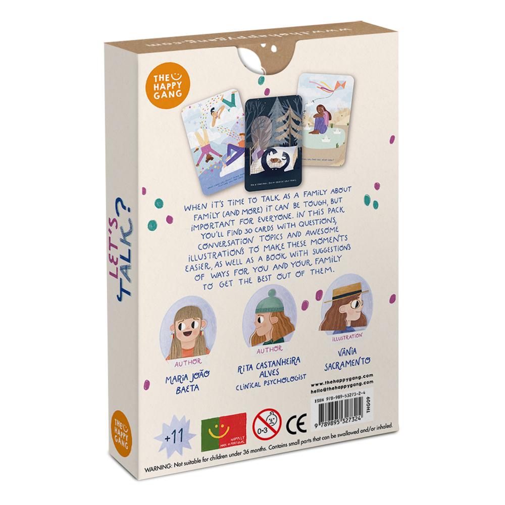Esta baraja con textos en inglés, plantea cuestiones y temas sobre los que hablar y compartir en familia, pues aunque no siempre sea fácil, el diálogo es muy necesario para fortalecer el vínculo y conocer mejor a aquellos con los que compartimos vida.Déjate llevar por las increíbles ilustraciones de las cartas, ¡y conoce y deja que te conozcan mejor los que te rodean!