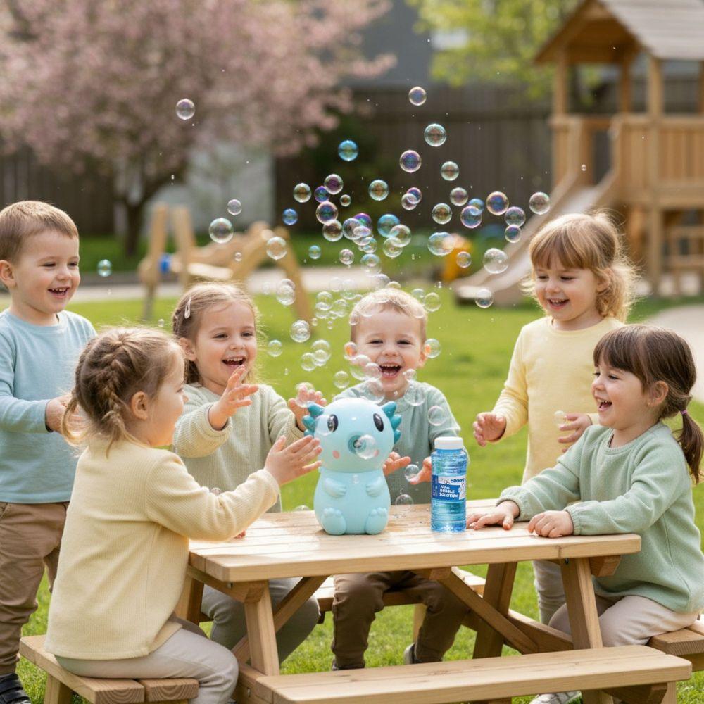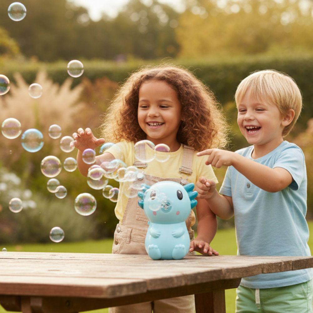 Con un diseño de ajolote que te conquistará, esta máquina automática crea al instante un flujo continuo de brillantes pompas.Es muy fácil de usar, para que juegues sin complicaciones haciendo cientos de mágicas pompas en cualquier lugar.