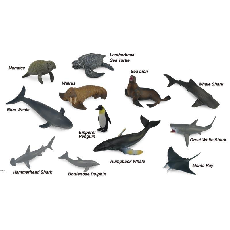 Mini animales salvajes fabricados en plástico resistente y flexible. Perfectos para jugar y recrear el fondo marino más sorprendente.