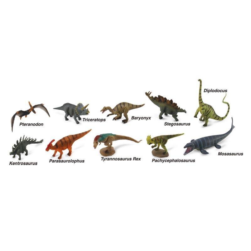 Mini dinosaurios salvajes fabricados en plástico resistente y flexible. Perfectos para jugar y recrear un mundo prehistórico.