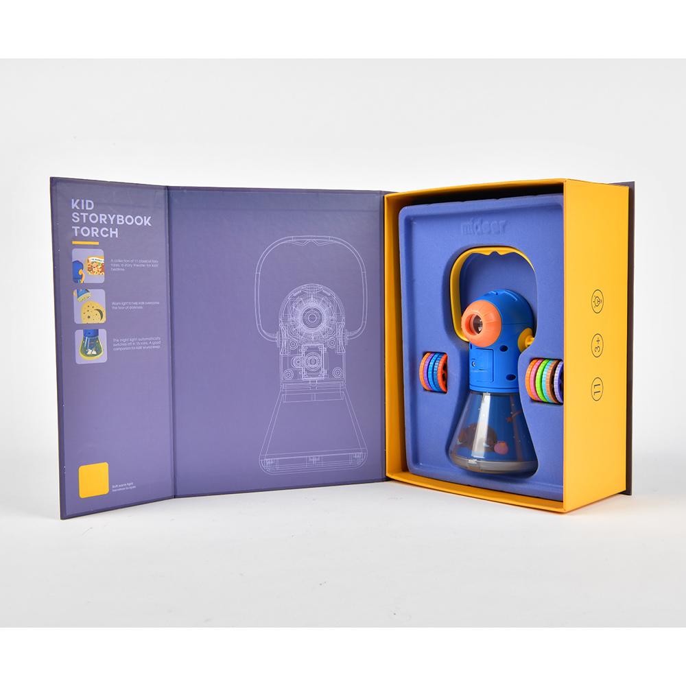 La hora del cuento nunca volverá a ser igual con este genial proyector. Escoge el disco con el cuento que prefieras y proyéctalo en el techo o la pared con la luz apagada, ¡conviértete en el narrador de la historia!También funciona como linterna, ideal para las expediciones nocturnas, y dispone de modo de luz nocturna, con una relajante proyección de estrellas y luna.