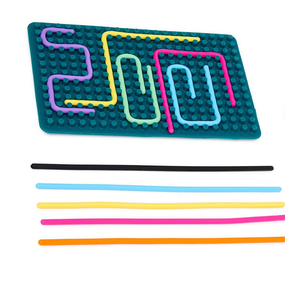 Escoge una de las dos caras del soporte de silicona y encaja los fideos flexibles en las ranuras para formar infinidad de figuras mientras pones a prueba tu destreza.Utiliza las plantillas con modelos para copiar o inventa los tuyos propios, ¡el único límite es tu imaginación!