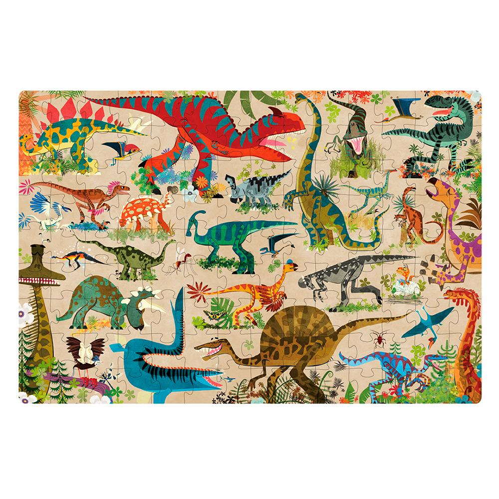 Descubre un paisaje salvaje lleno de vida, ¡hay dinosaurios por todas partes! Pieza a pieza, irás descubriendo las especies que se ocultan en esta escena, a cada cual más exótica, ¿sabrías nombrarlas a todas?