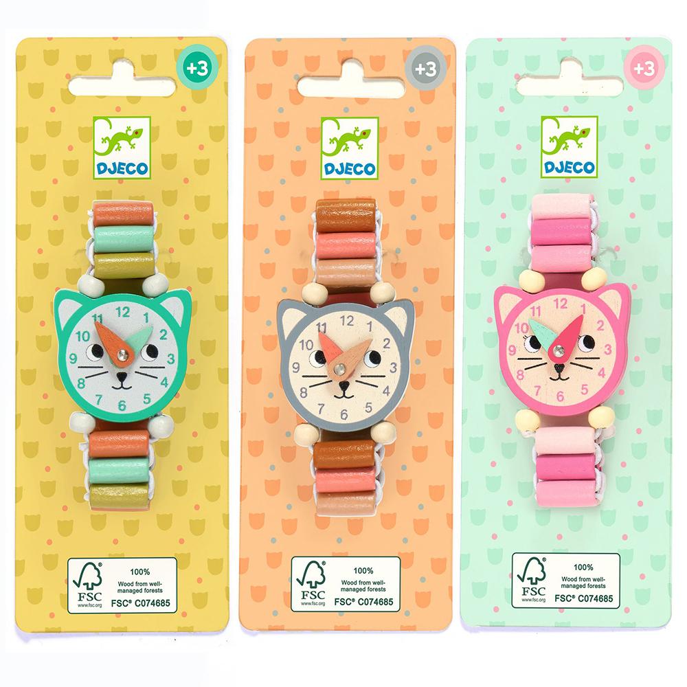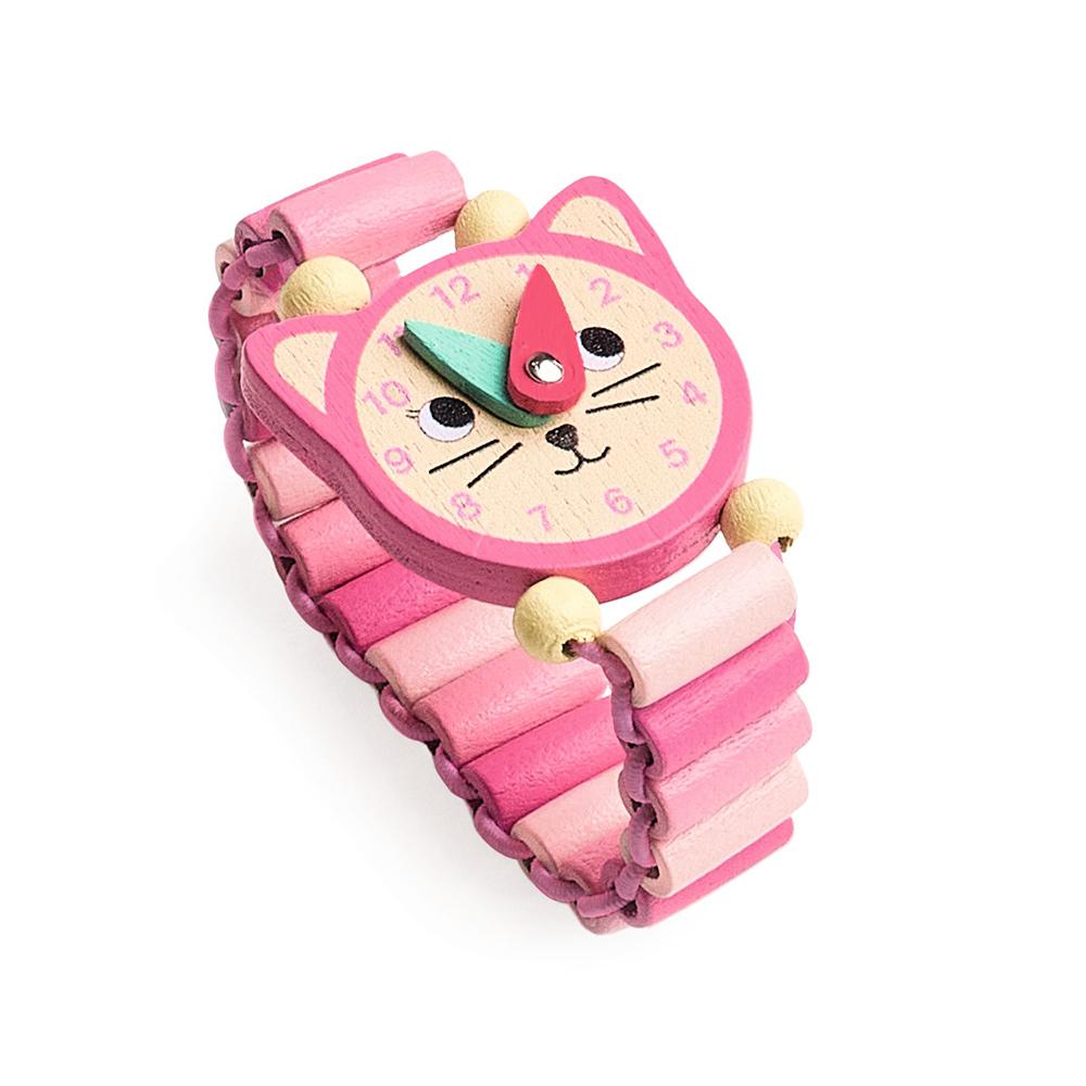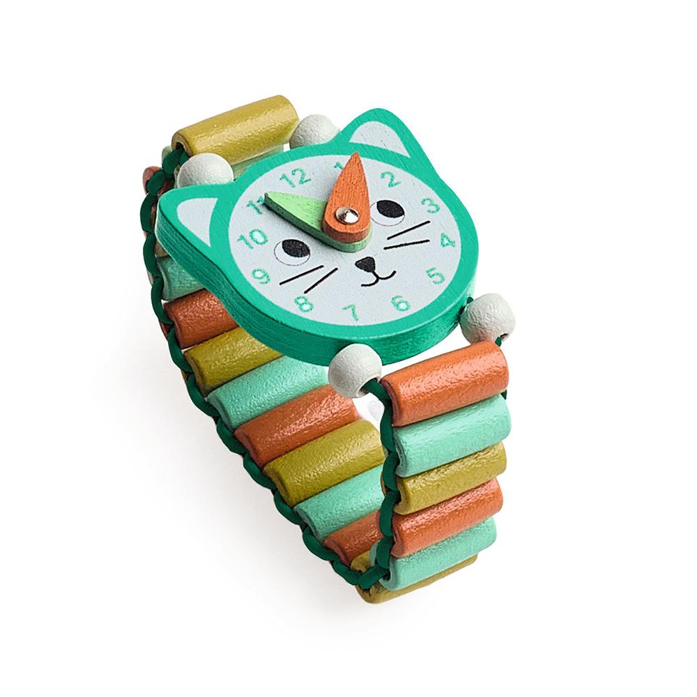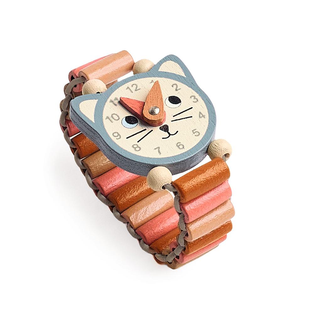 Reloj de pulsera de madera con esfera en forma de gato, con correa de madera y goma elástica. No tiene mecanismo real pero las manillas son móviles, por lo que es ideal para que dejes volar la imaginación y lo uses como complemento en cualquier ocasión.