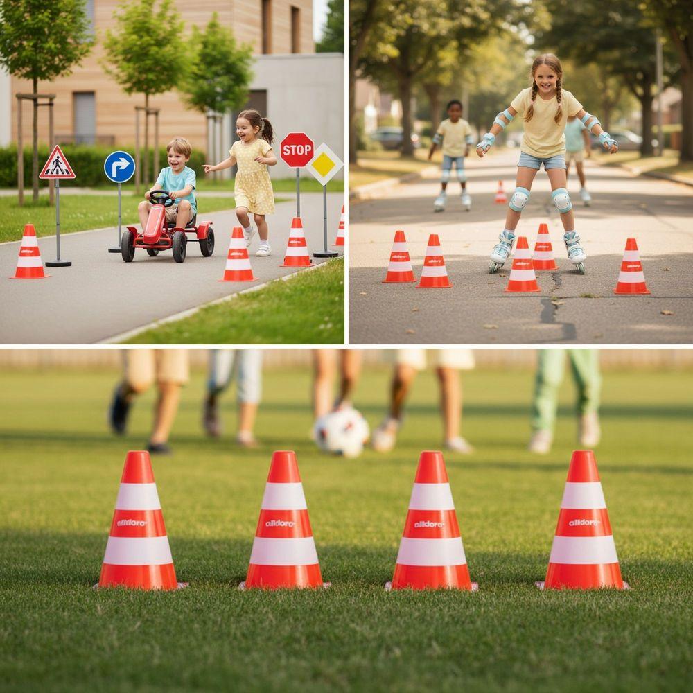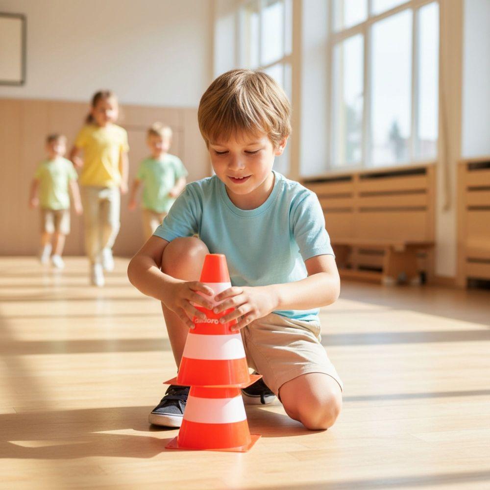 Este versátil set de 4 conos se convertirá en un recurso imprescindible para tu aula. Desde juegos de educación vial y circuitos motrices hasta señalización para deportes y actividades, ofrece infinitas posibilidades de juego y aprendizaje.