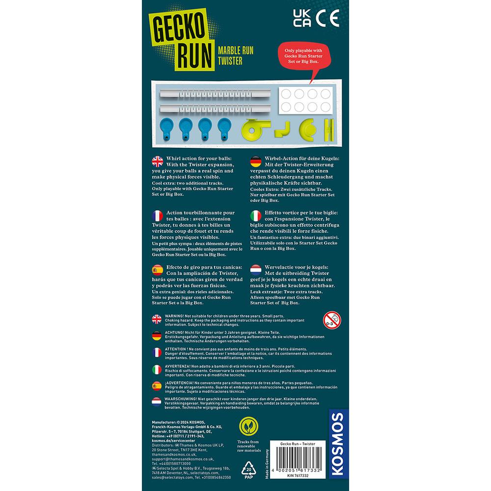 Experimenta observando las distintas posibilidades y llevando al límite cada giro.Combina las piezas de este set con el resto de tu circuito Gecko Run Starter Set, y añade más emoción a tu estructura con cada giro.