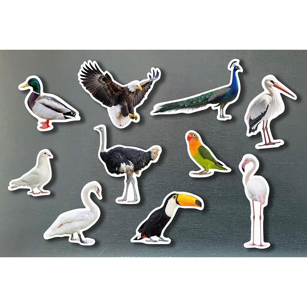 Se trata de un conjunto de diez figuras con imágenes reales de aves impresas sobre bambú y magnéticas, perfectas para que niños y niñas dejen volar la imaginación y descubran el mundo que les rodea.Son aptas para casi cualquier superficie metálica.