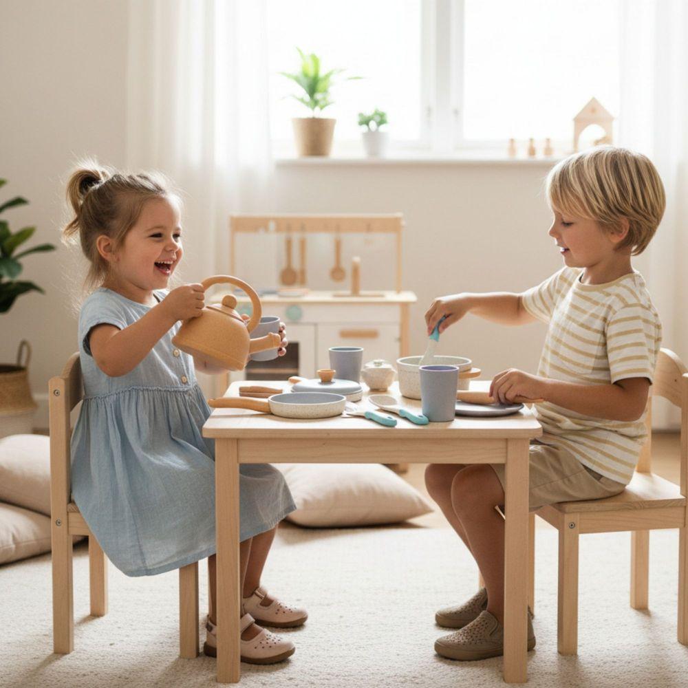 Este set de cocina invita a niños y niñas a convertirse en auténticos protagonistas entre fogones. Con todos los accesorios y detalles, podrán preparar deliciosos platos, servir la mesa y recrear escenas cotidianas llenas de imaginación. Llévalo a tu aula y crea un espacio de juego simbólico donde la imaginación y la diversión acompañen cada aprendizaje.