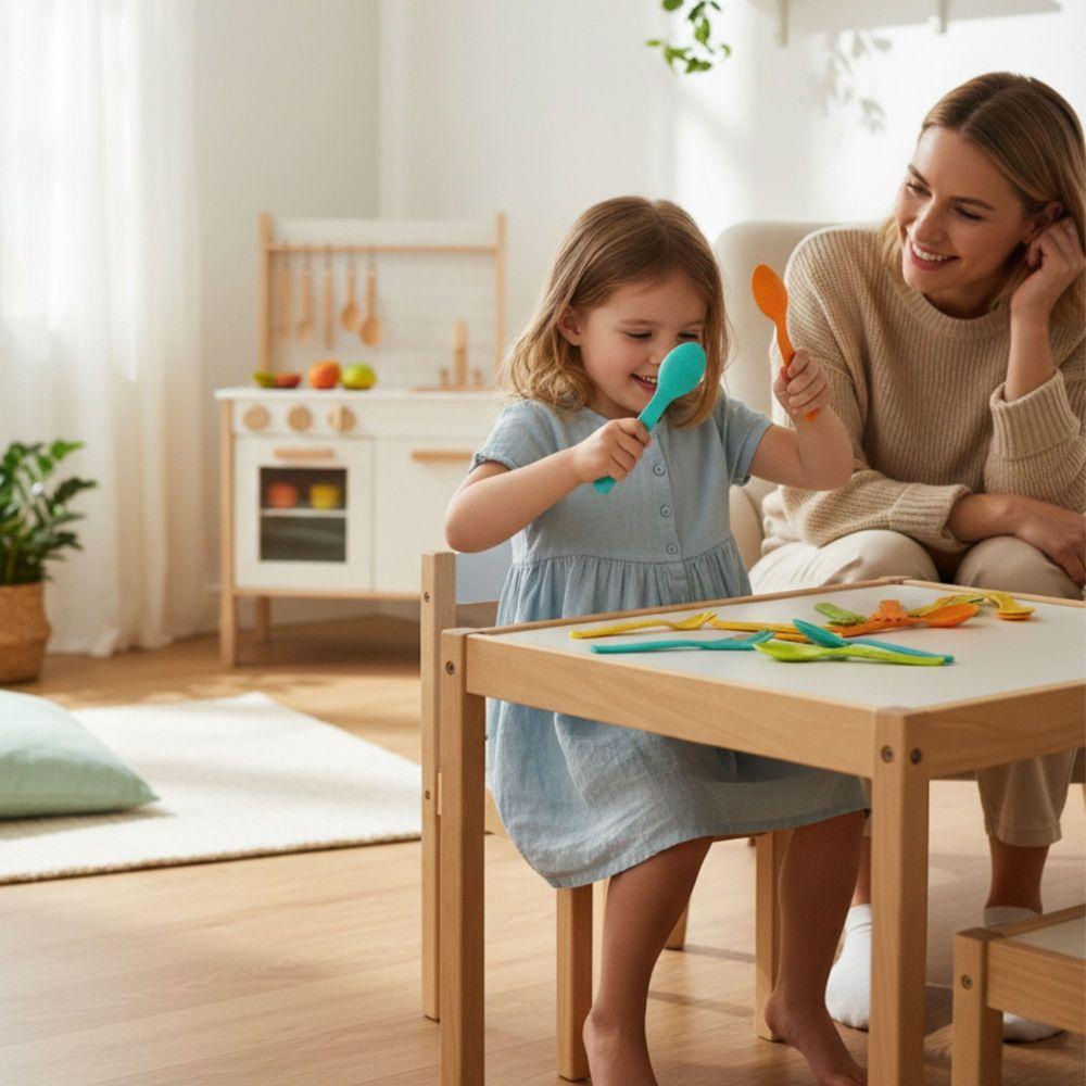 Este set de cubiertos es perfecto para completar el espacio de cocina en tu aula. Permite a los niños y niñas organizar la mesa, servir alimentos y recrear situaciones cotidianas de forma participativa y disfrutando del juego de roles.Un recurso versátil que aporta realismo al juego gracias a los cuidados detalles y su resistencia.