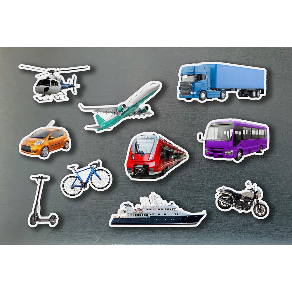 Se trata de un conjunto de diez figuras con imágenes reales de medios de transporte impresas sobre bambú y magnéticas, perfectas para que niños y niñas dejen volar la imaginación y descubran el mundo que les rodea.Son aptas para casi cualquier superficie metálica.