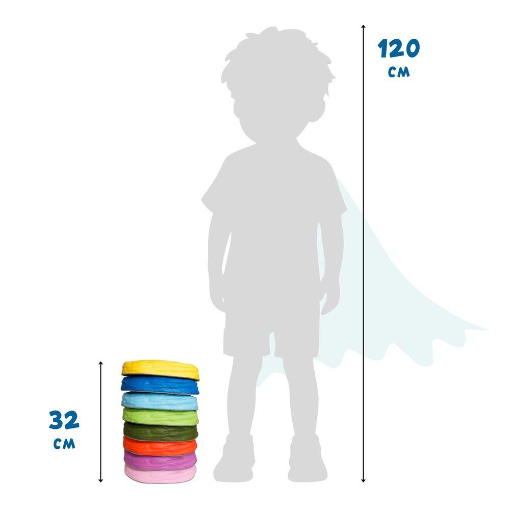 Este set de suaves almohadillas se inspira en las piedras de río para disfrutar de un sinfín de juegos o circuitos, que tendrás que superar pasando sobre cada una de ellas sin perder el equilibrio, ¡son grandes, suaves y desafiantes!Son ideales para circuitos psicomotrices, actividades para reforzar la coordinación y equilibrio.