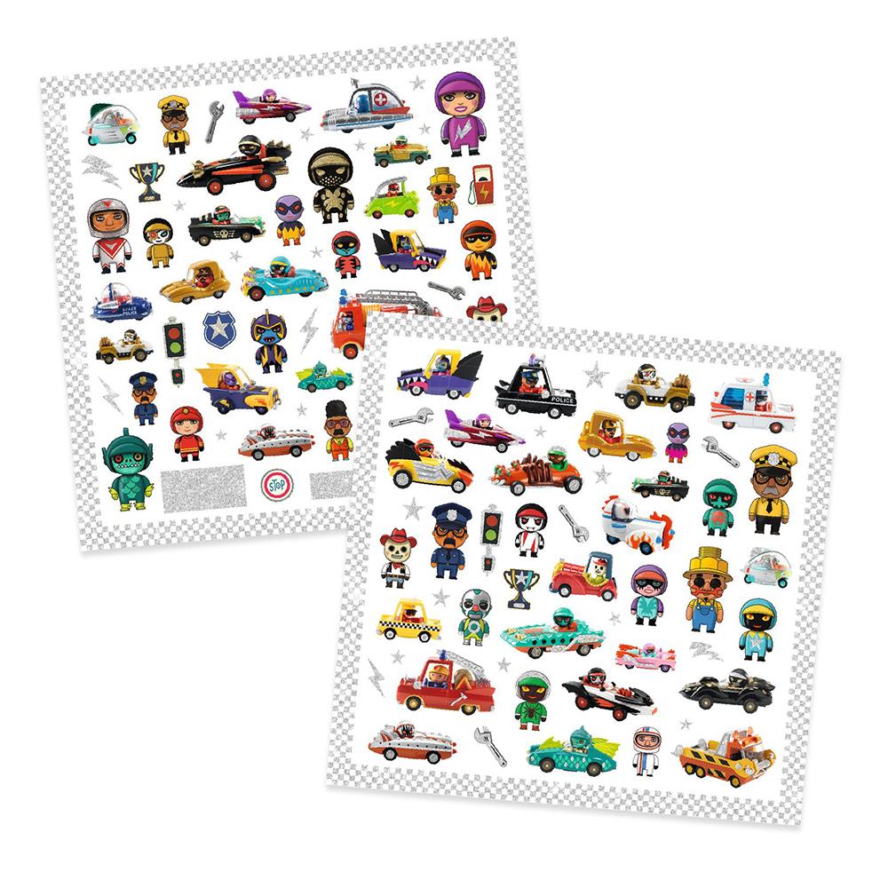 Transpórtate al vertiginoso mundo de los Crazy Motors con este set de adhesivos repletos de espectaculares bólidos y sus curiosos pilotos. Podrás personalizar tus libros o cuadernos, o usarlas para completar alguno de tus dibujos o diseños, el límite es tu imaginación.