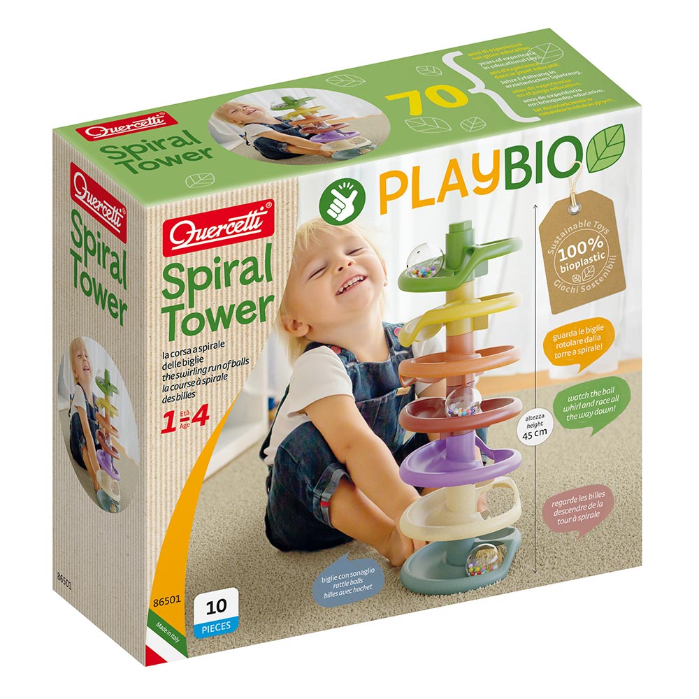Los juegos de la línea Play Bio han sido fabricados con bio plástico, un material compuesto exclusivamente de madera y plástico, diseñado para reducir las emisiones de CO2 en el planeta; de esta manera, Quercetti combina la innovación de los materiales con el valor educativo del juguete.