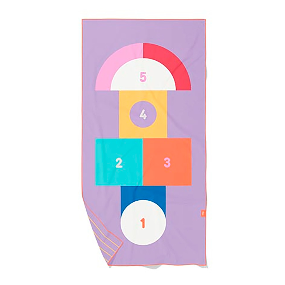 Esta original toalla de microfibra tiene un diseño único con dos caras: en la parte delantera dispone de estampado con el clásico juego de rayuela para entretenerte mientras descansas en la playa o la piscina y, en la parte trasera, un colorido estampado lleno de estilo.