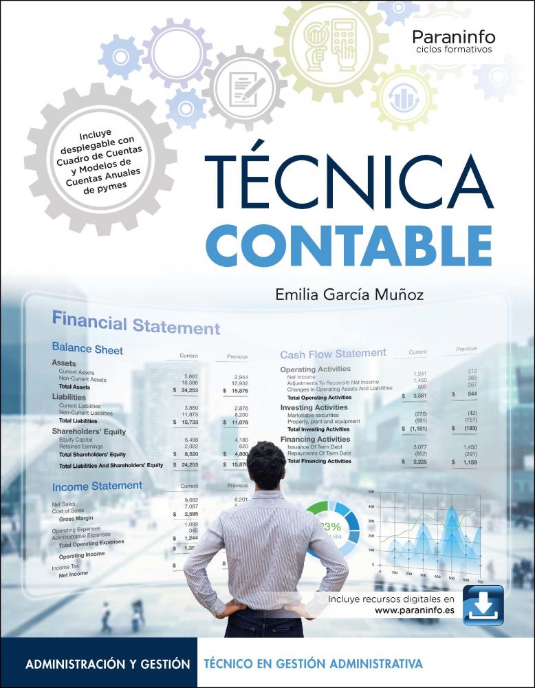 En este libro encontrarás actualizado todo lo que necesitas saber sobre: normativa internacional y nacional a nivel contable, gestión contable de la pyme y contabilización de las operaciones habituales de la empresa, así como el uso de software específico. Este libro desarrolla los contenidos del módulo profesional de Técnica Contable, del Ciclo Formativo de grado medio en Gestión Administrativa, de la familia profesional de Administración y Gestión. Técnica contable está adaptado a la última versión del Plan General Contable, incluyendo la actualización de los modelos que hay que realizar para la creación de las cuentas anuales. La documentación estudiada en las diferentes unidades se ha revisado y puesto al día, así como las imágenes ilustrativas de los procesos contables, los ejemplos y los casos prácticos. Se incluye, además, la versión de 2023 de CONTASOL en la última unidad del libro, para que el futuro profesional se familiarice con el manejo del programa más extendido de gestión contable, y así pueda realizar los asientos contables, elaborar los informes y los modelos explicados a lo largo del libro. Se ha reforzado el aspecto práctico con numerosas actividades resueltas y propuestas intercaladas con la teoría, así como casos prácticos igualmente resueltos y propuestos, además de gran número de actividades finales de comprobación, aplicación y ampliación. Finalmente, se aportan como material y documentación extra en la ficha web del libro disponible en www.paraninfo.es valiosas herramientas para que el alumnado pueda practicar todo el proceso de contabilización, desde la apertura del ejercicio hasta su cierre, tanto mediante la contabilización de las operaciones como la elaboración de modelos oficiales (balance, cuenta de resultados, cuenta de pérdidas y ganancias, etcétera). La autora, Emilia García Muñoz, comenzó su andadura profesional en 2009 como licenciada en Administración y Dirección de Empresas. Especializada en Comercio Internacional y Marketing, cuenta con diversas obras publicadas relacionadas con la formación en esta área, en la que también imparte docencia, así como en otras ramas profesionales de Administración y Finanzas.