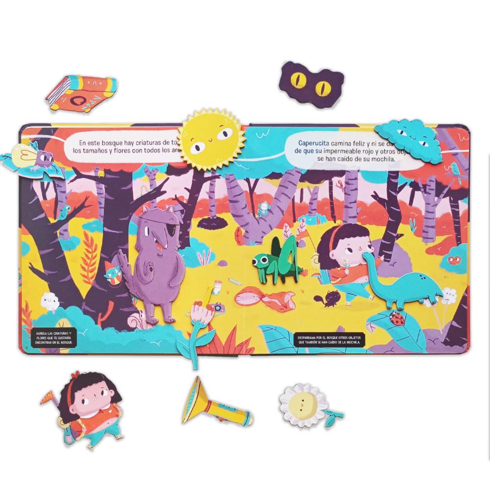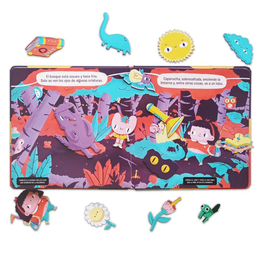 Descubre las emociones que experimenta Caperucita Roja mientras explora el bosque, y los cinco sentidos que usan Los Tres Cerditos para percibir el barrio donde viven. Disfruta completando las historias con los imanes que incluye el libro y, cuando termines, ¡vuelve a empezar y cambia las escenas las veces que quieras!