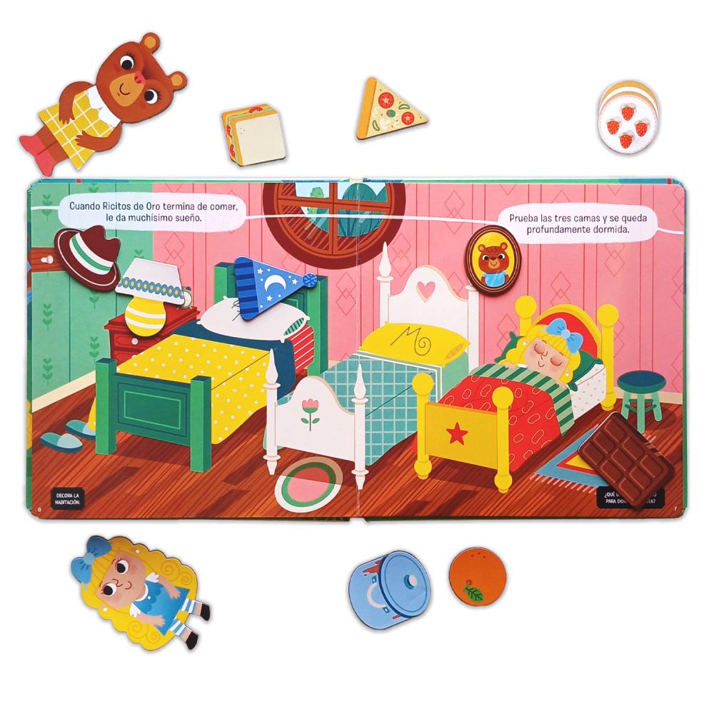 ¡Descubre las formas que encuentra Ricitos de Oro mientras explora el bosque y la casa de Osito y su familia!Disfruta completando las historias con los imanes que incluye el libro y, cuando termines, ¡vuelve a empezar e inventa nuevas escenas las veces que quieras!