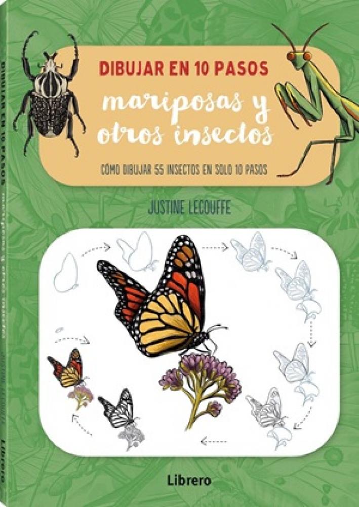 Dibujar en 10 pasos: mariposas y otros insectos enseña a dibujar más de 55 insectos diferentes paso a paso, desde escarabajos y mariposas hasta saltamontes, abejas y libélulas. La explicación básica sobre los materiales necesarios y el repaso general de las técnicas para colorear completan esta magnífica introducción al dibujo de una gran variedad de insectos.