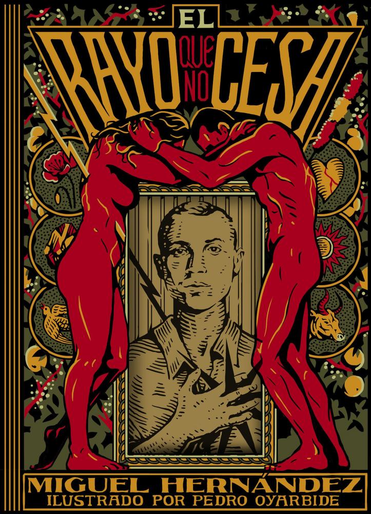 Pedro Oyarbide vuelca todo su talento en ilustrar uno de los libros más conmovedores de la poesía en español cuando se cumplen 90 años de su publicación. El rayo que no cesa es la obra más representativa y lograda de Miguel Hernández. Resultado y testimonio de una profunda crisis vital, sus páginas exploran la vivencia del amor, un amor doloroso, intenso y frustrado que deviene una herida constante. A la riqueza poética de Miguel Hernández se suma aquí la sensibilidad artística de Pedro Oyarbide, quien acompaña estos versos desgarradores con ilustraciones igualmente potentes, profundizando en la simbología hernandiana. Los treinta poemas de El rayo que no cesa adquieren una dimensión inédita en esta edición profusamente ilustrada que invita a una lectura renovada, donde palabra e imagen dialogan para intensificar la emoción, el tormento y la belleza de un libro esencial de la literatura española.