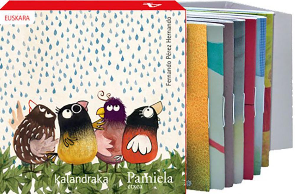 KALANDRAKA eta PAMIELA argitaletxeen eskutik, egungo egileen ipuin ezagunenak kutxa batean bilduak. Amets handiak gordetzen dituzten liburu ttipiak. Amaren bidaia Erbia eta Dortoka. Bigarren aukera Hankalata pirata Opari ezberdin bat Sandia-gidaria Xirimiri Zazpi munstro eta katu bat