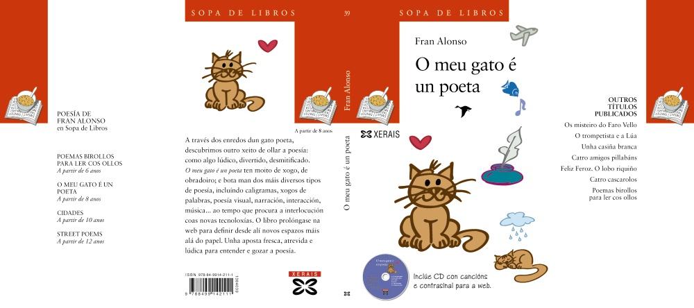 O meu gato é un poeta é un libro que pretende transmitir a poesía dun xeito lúdico, divertido e, sobre todo, accesible para os lectores e lectoras. Está ideado coma se fose un xogo ou un obradoiro. O meu gato é un poeta bota man da fusión de xéneros literarios a través da reflexión, da poesía visual, dos xogos de palabras, da interacción, dos caligramas, da narración, da música, das novas tecnoloxías para conseguir unha proposta poética fresca e divertida. O libro vai acompañado dun CD que enriquece o texto grazas á mestura de distintas artes e amplia ante os lectores a súa visión da poesía, permitíndolles abordar novas dimensións e agrandando a súa percepción sensorial. A música das seis cancións do CD é de Xurxo Souto. O meu gato é un poeta conta tamén con web propia www.gatopoeta.franalonso.gal. Nesta páxina o lector poderá atopar máis poemas, información sobre o libro e o disco, xogos, mp3 coa voz do autor recitando, cuestionarios con respostas...