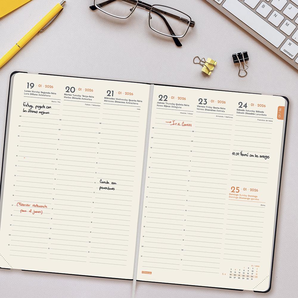 Agenda lisa FA5 negro 2026 semana vista vertical