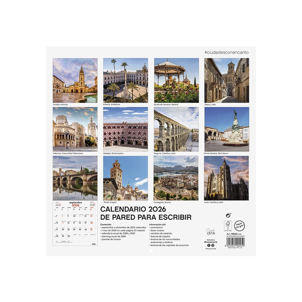Calendario anual de pared con agujero en la parte superior para colgar, ¡perfecto para planificar! En este calendario encontrarás las imágenes de algunos de las ciudades más impresionantes, para dibujarte una sonrisa cada vez que lo consultes.Dimensiones del calendario colgado: 30 x 60cm.Dimensiones del calendario cerrado: 30 x 30cm.Formato mes vista, anual de Enero de 2026 a Diciembre 2026 (12 meses).