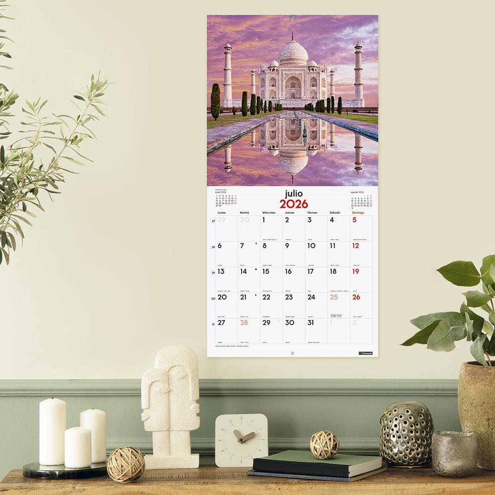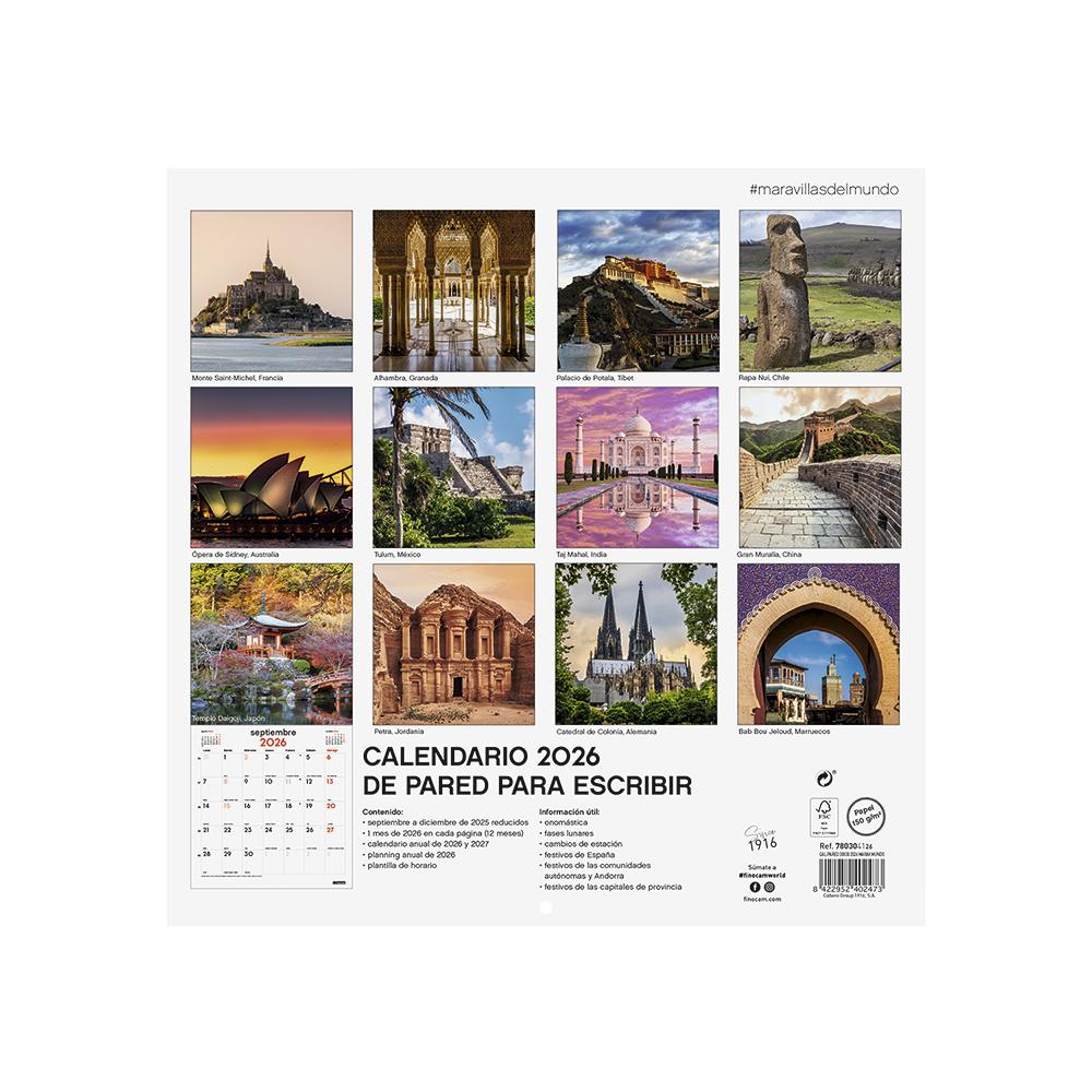 Calendario anual de pared con agujero en la parte superior para colgar, ¡perfecto para planificar! En este calendario encontrarás las imágenes de algunas de las maravillas del mundo más destacables, para dibujarte una sonrisa cada vez que lo consultes.Dimensiones del calendario colgado: 30 x 60cm.Dimensiones del calendario cerrado: 30 x 30cm.Formato mes vista, anual de Enero de 2026 a Diciembre 2026 (12 meses).
