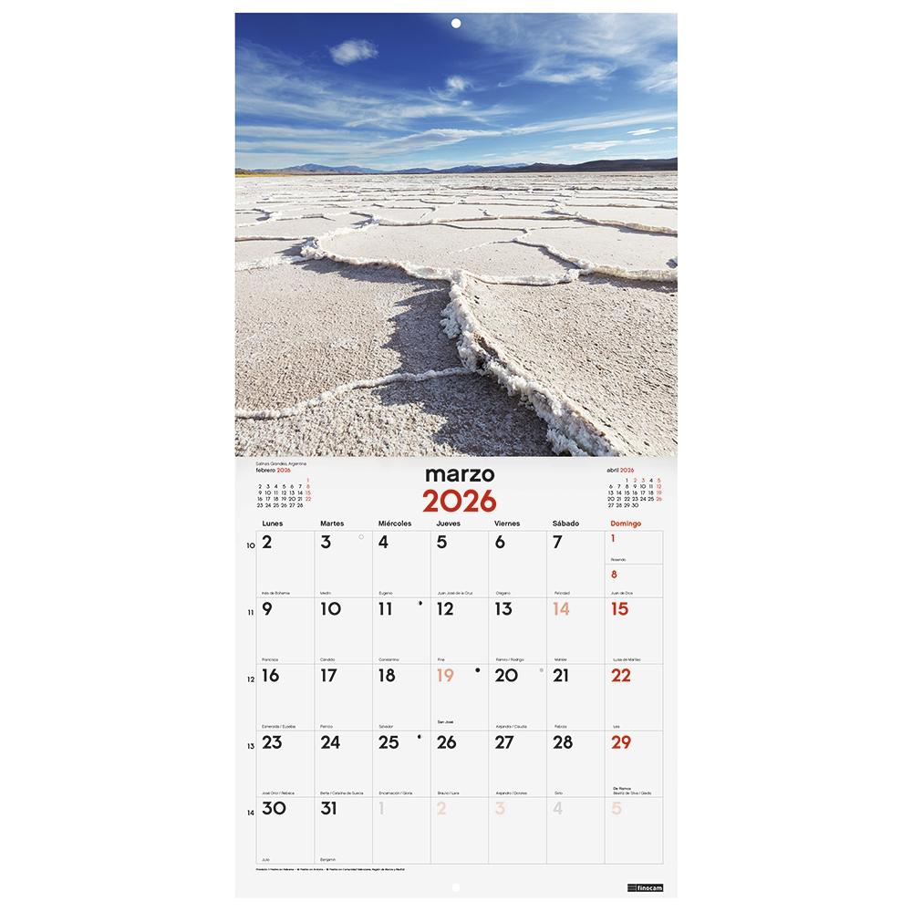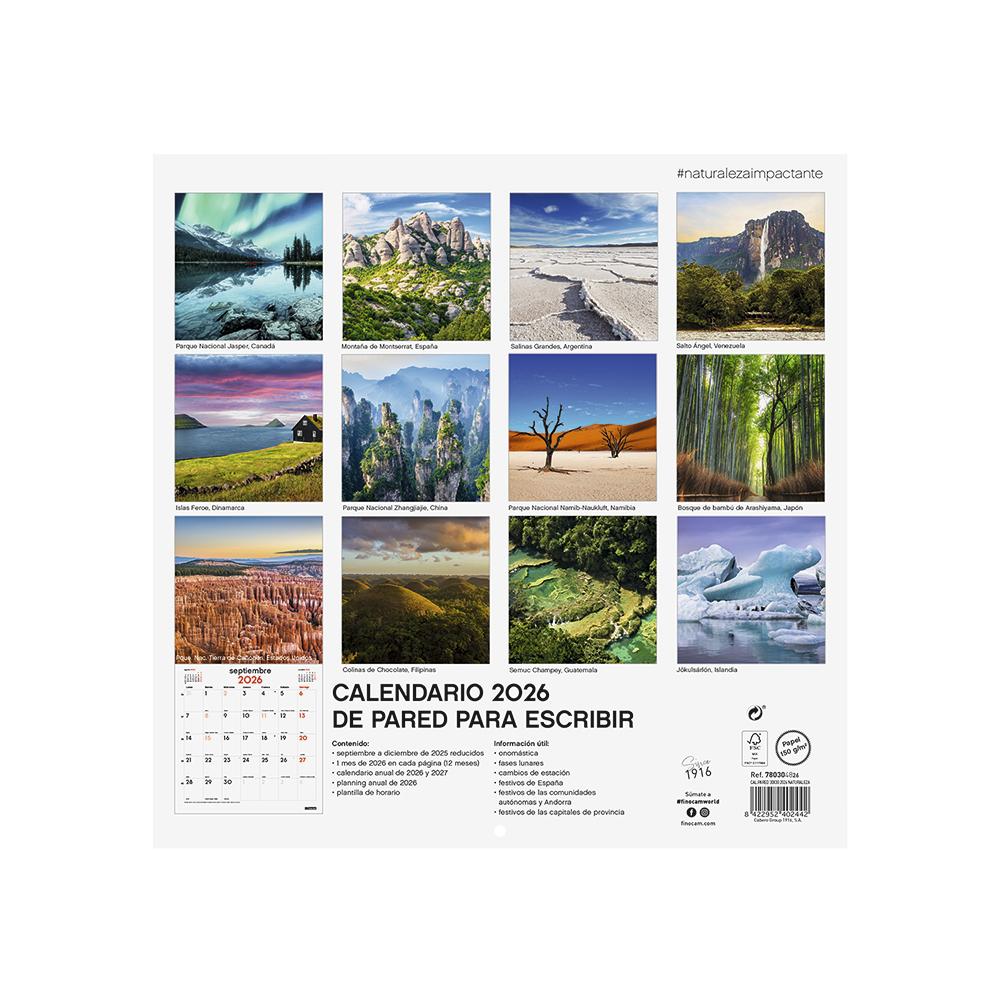 Calendario anual de pared con agujero en la parte superior para colgar, ¡perfecto para planificar! En este calendario encontrarás las imágenes sobre naturaleza más bellas, para dibujarte una sonrisa cada vez que lo consultes.Dimensiones del calendario colgado: 30 x 60cm.Dimensiones del calendario cerrado: 30 x 30cm.Formato mes vista, anual de Enero de 2026 a Diciembre 2026 (12 meses).