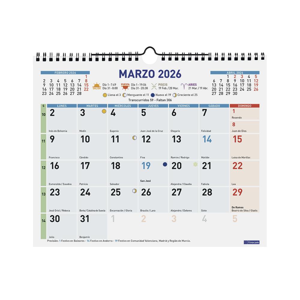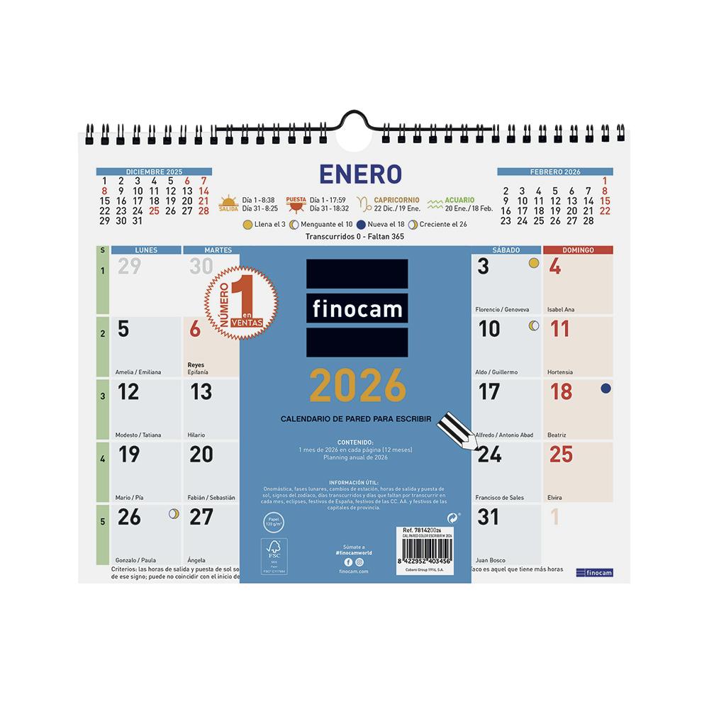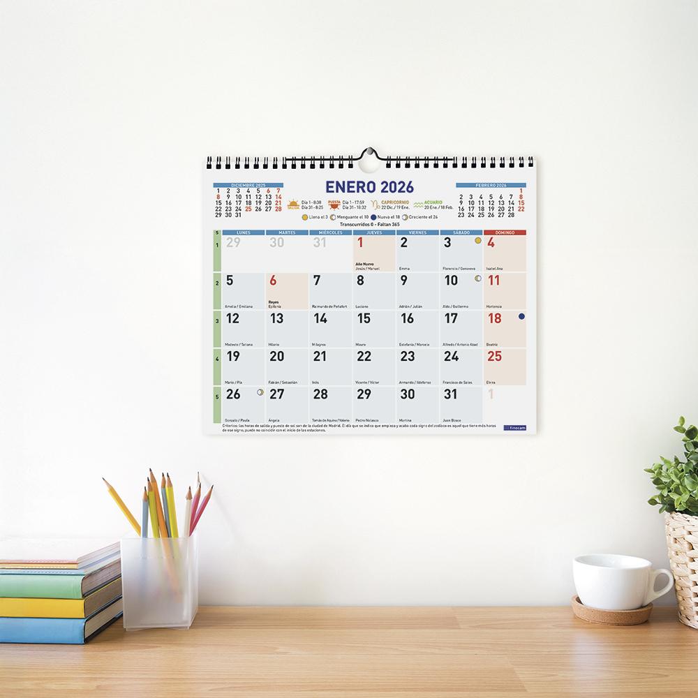 Calendario anual de pared encuadernado con espiral doble y con colgador. Incluye informaciones relevantes del mes, espacio diario para anotaciones, mes anterior y posterior en cada página y otros contenidos extra. ¡Perfecto para planificar!Calendario anual de Enero 2026 a Diciembre 2026 (12 meses).Dimensiones: 30 x 24,7cm.