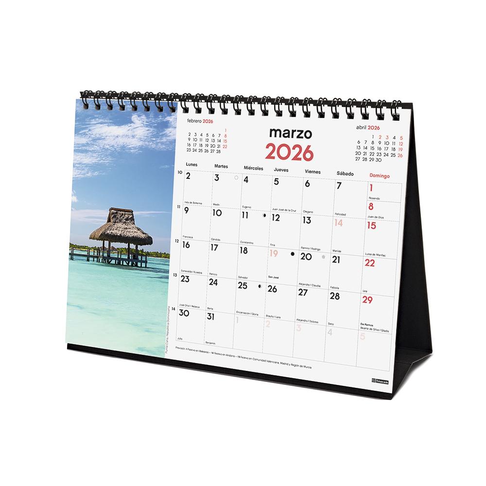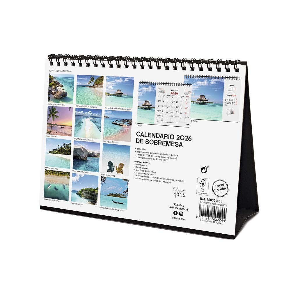 Calendario anual de sobremesa encuadernado con espiral doble ¡perfecto para planificar! En este calendario encontrarás imágenes con paisajes paradisíacos, para dibujarte una sonrisa cada vez que lo consultes. Contiene información útil y de interés, espacio diario para anotaciones y mes anterior y posterior en cada página.Dimensiones: 21 x 15cm.