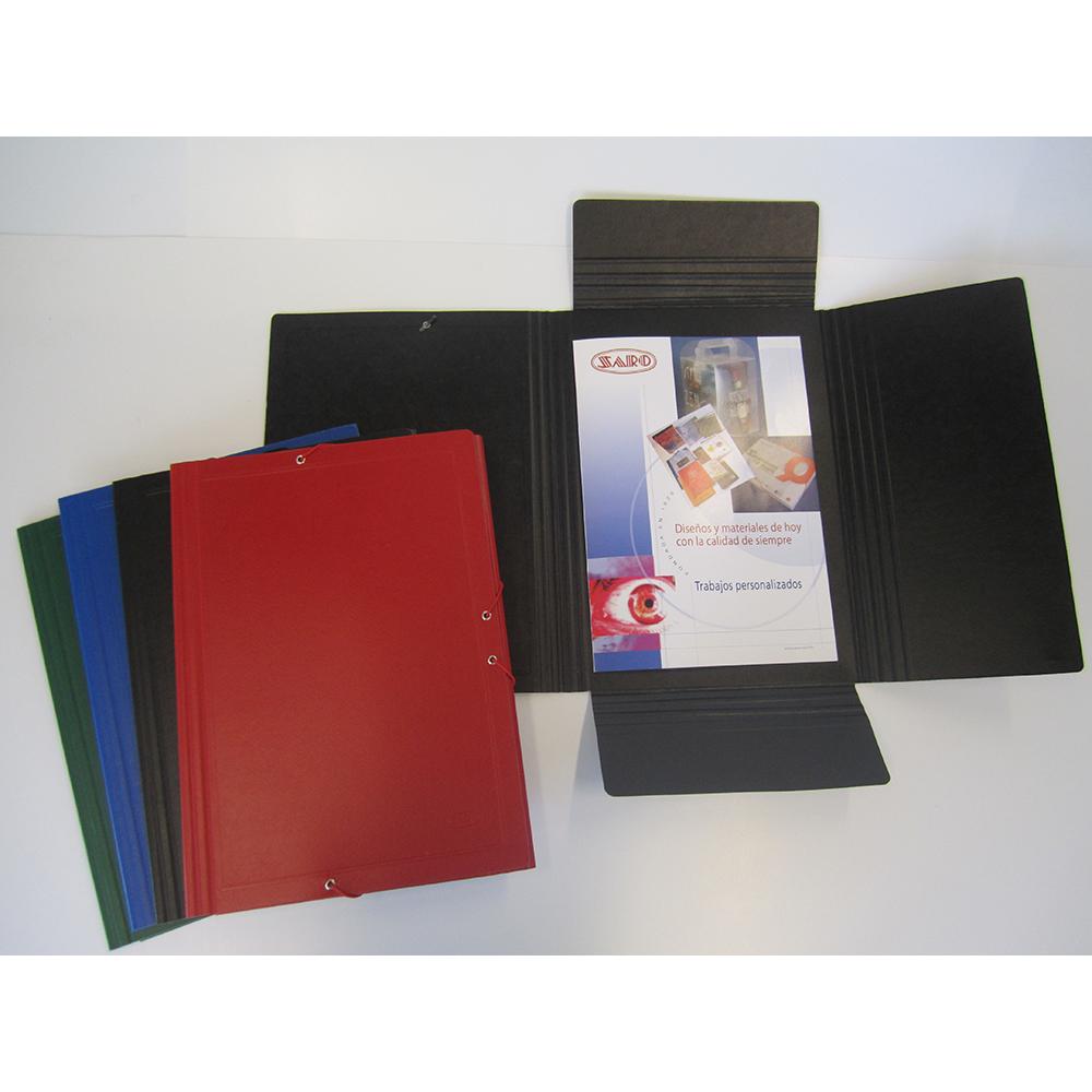 Está fabricada en cartón resistente, y dispone de 3 solapas y cierre con gomas, una carpeta sencilla muy recomendable para tener siempre a mano.