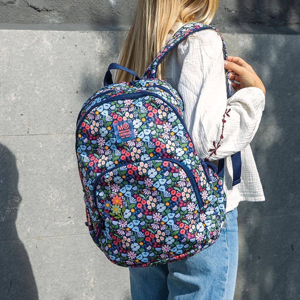 La mochila triple modelo Oslo Spring Dawn dispone de dos compartimentos de gran capacidad con apertura superior, y otro más pequeño con apertura frontal además de bolsillo lateral con goma, perfecto para la botella de agua. Los cierres cuentan con cremalleras de nylon de alta calidad y muy resistentes y cuenta con espalda acolchada y asas ergonómicas ajustables en altura.Fabricada a partir de botellas de plástico recicladas.Medidas: 28 x 16,5 x 41cm.Capacidad: 27 litros.