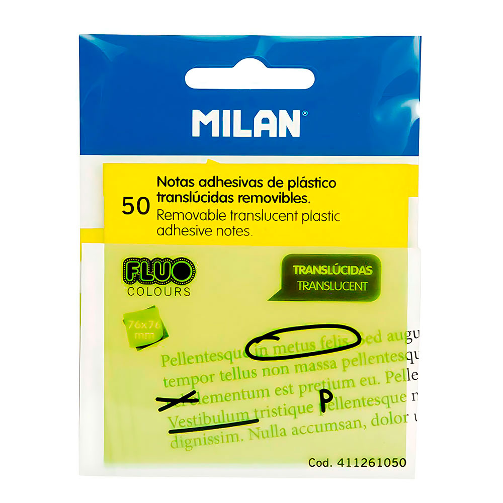 Este genial bloc de notas translúcidas permitirá que en cualquier momento puedas escribir en él todo aquello que tengas que recordar o tener en cuenta para que no se te olvide.Al ser translúcidas, puedes colocarlas encima de cualquier texto e indicar sobre ellas lo que necesites, de esa manera mantendrás intactos tus libros y cuadernos.Bloc de 50 hojas color amarillo translúcido con dimensiones de 76x76mm.