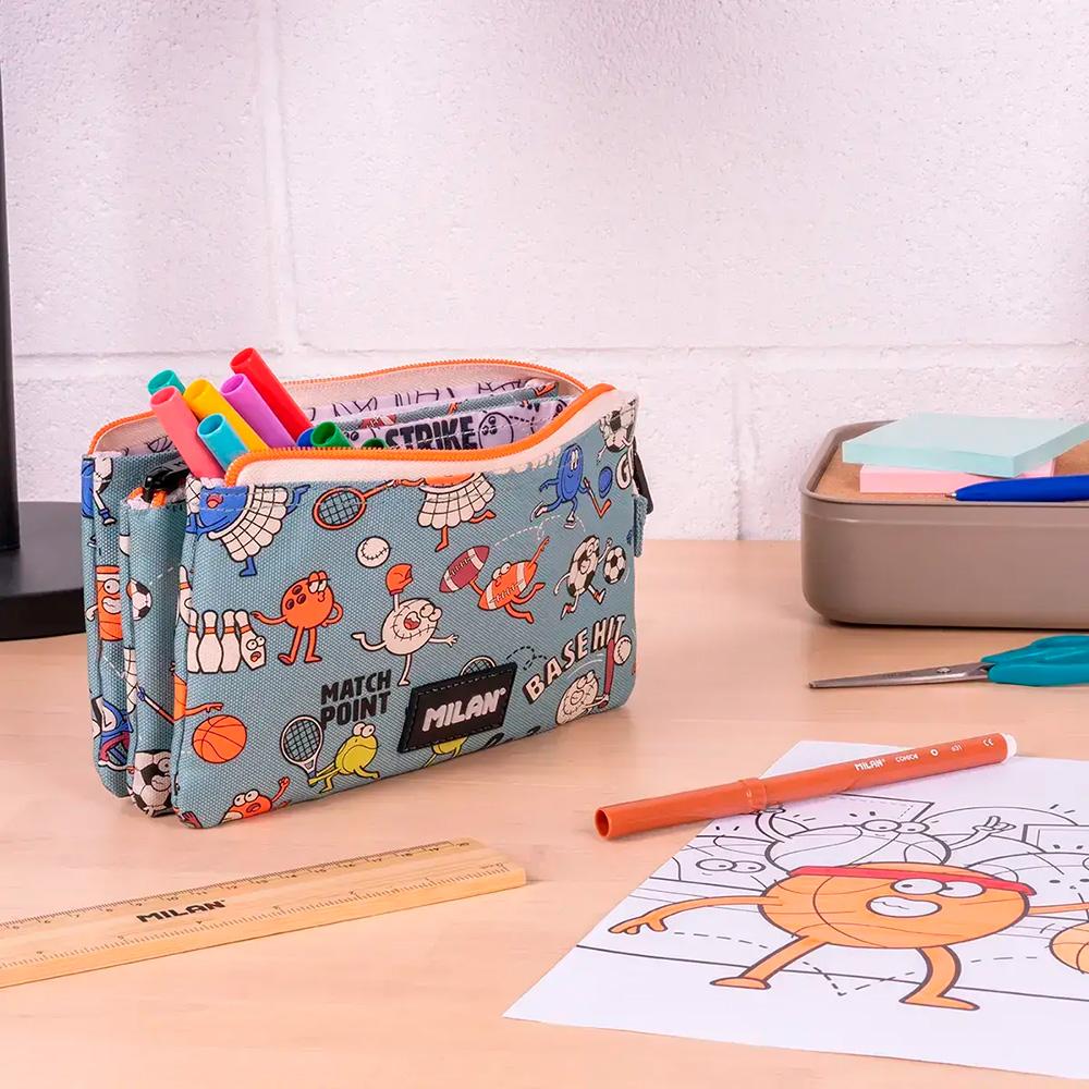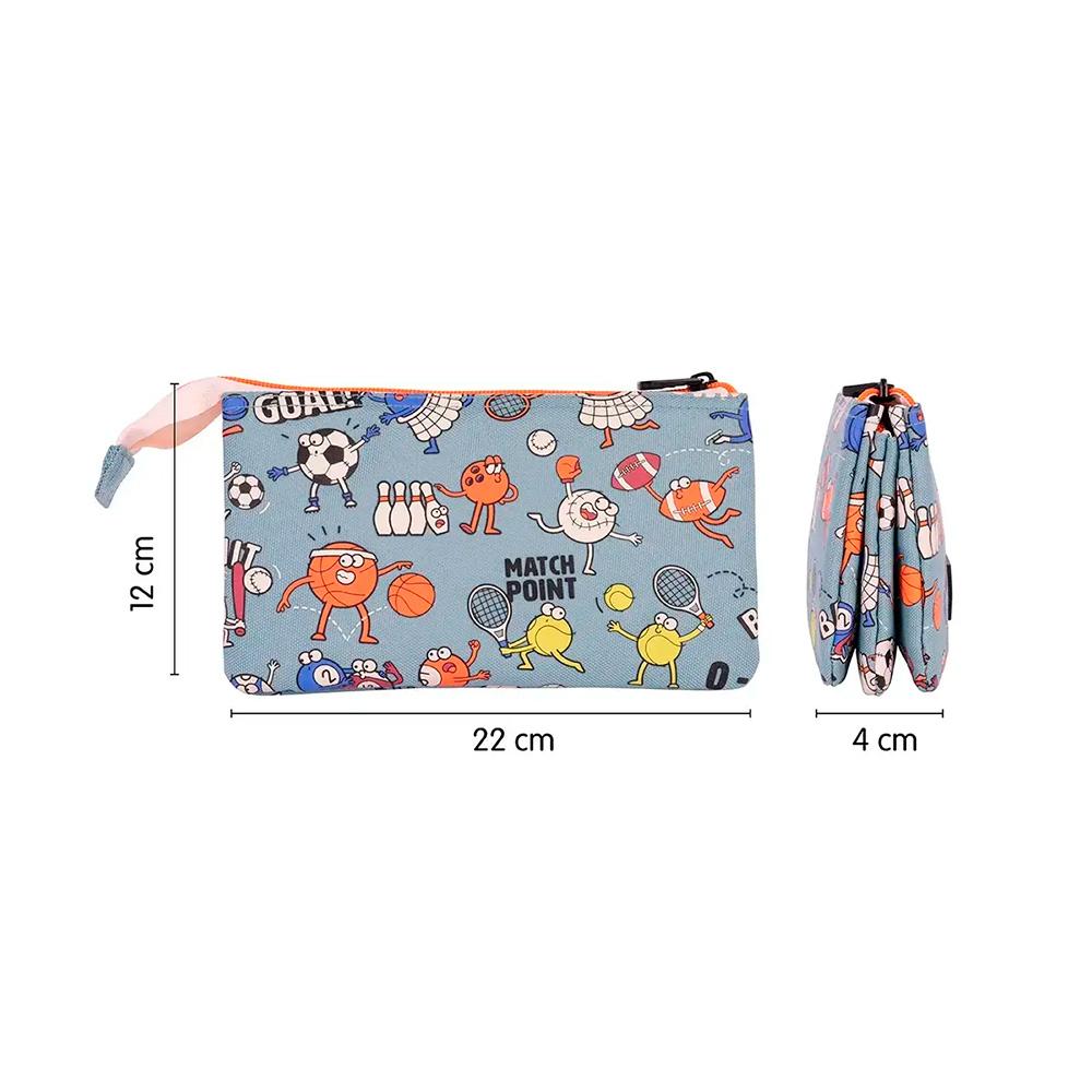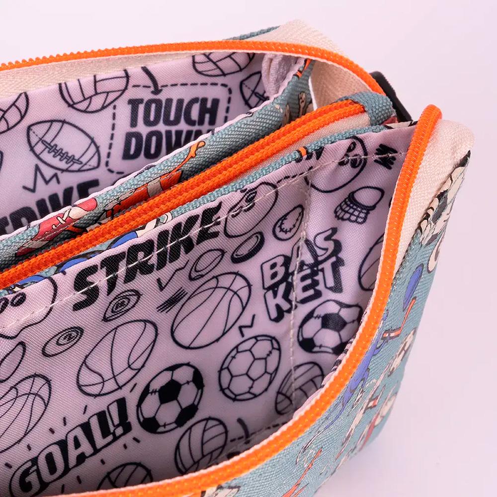Portatodo con estampado inspirado en el deporte modelo Sports.Este portatodo dispone de 2 cremalleras y 5 compartimentos. La cremallera exterior facilita el acceso a 4 bolsillos interiores y una cremallera central, para guardar cada cosa en su espacio.Dimensiones: 22 x 12 x 4cm.