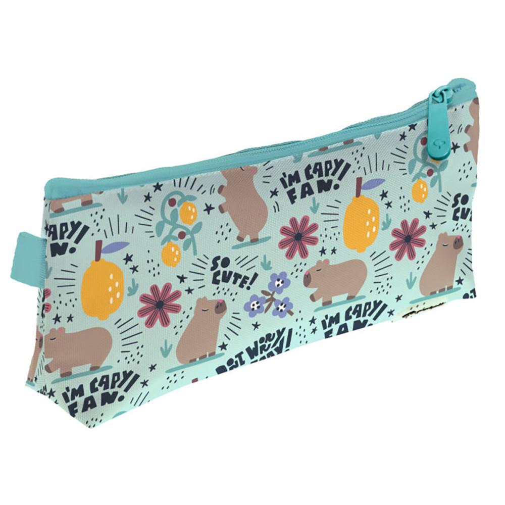 Su diseño es rectangular con una pequeña base para facilitar que se mantenga de pie, y dispone de apertura con cremallera frontal y superior.Incluye asa de agarre lateral.Dimensiones: 23,5 x 12cm.