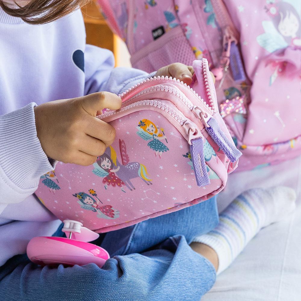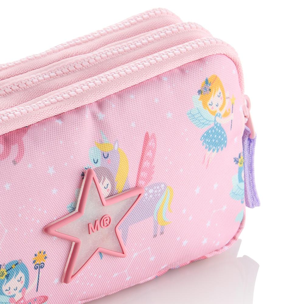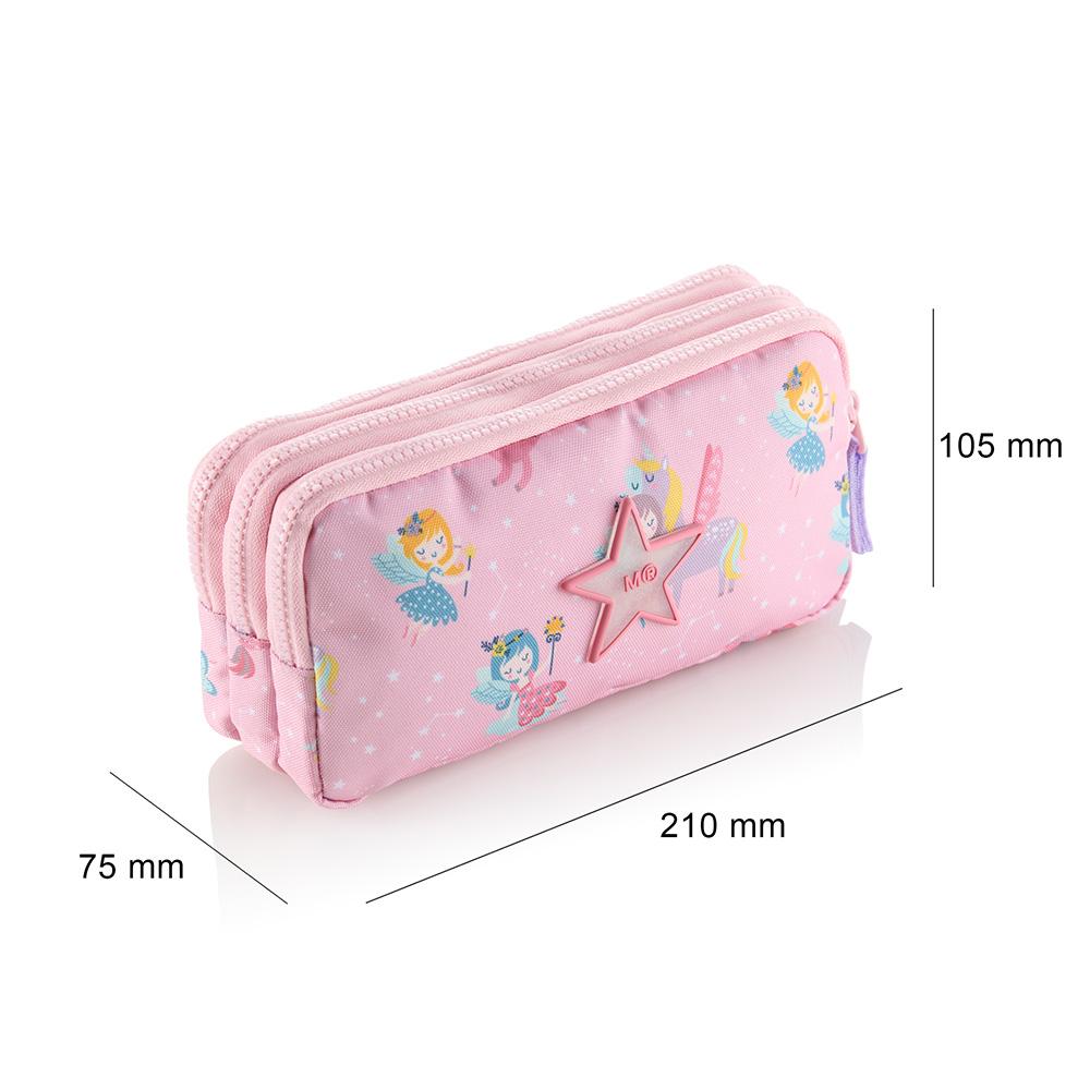 El portatodo triple rectangular modelo Fairies dispone de tres cremalleras que facilitan la organización de tu material de escritorio, y está fabricado en poliéster reciclado (RPET) y altamente resistente. Dispone de amplia capacidad, y su diseño permite que ocupe poco espacio.Medidas: 21 x 7,5 x 10,5cm.