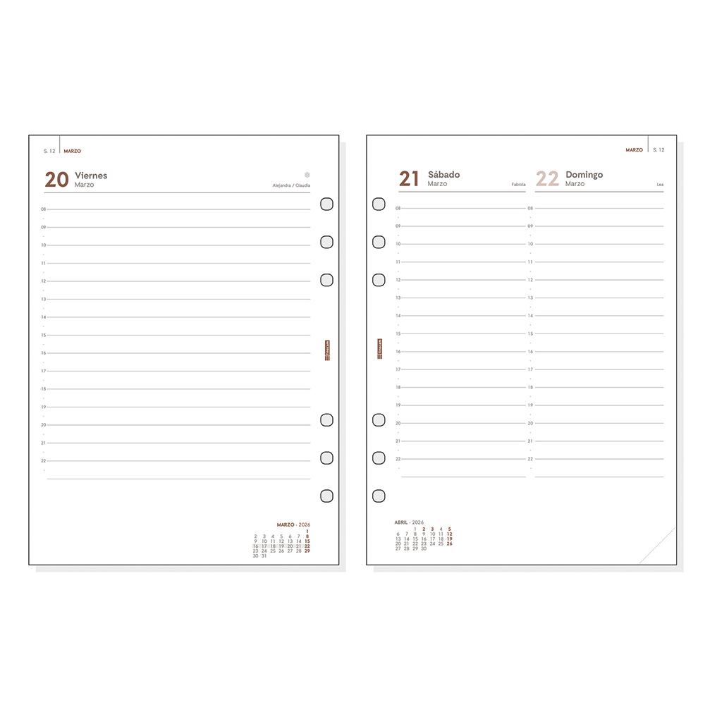Contiene información relativa a: onomástica, festivos nacionales y cambios de estación entre otros.Incluye plan anual desplegble, horario y calendarios entre otros.12 meses día por página más 2 meses resumidos quincena a la vista.Dimensiones exteriores: 15,5 x 1,5 x 21,5cm.Dimensiones del papel: 15,5 x 21,5m.